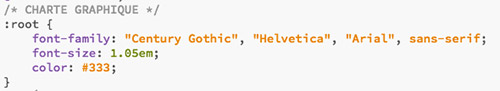 habituel, liez les quatre pages HTML à la feuille de style externe. - Débutez la rédaction de la feuille de style par l'encodage de caractères :