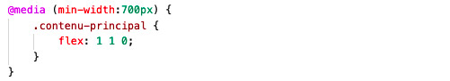 : - À l'aide de requêtes média, ajoutez maintenant ces règles conditionnelles sous chacune des règles mères correspondantes; elles permettent de disposer les flex-items de