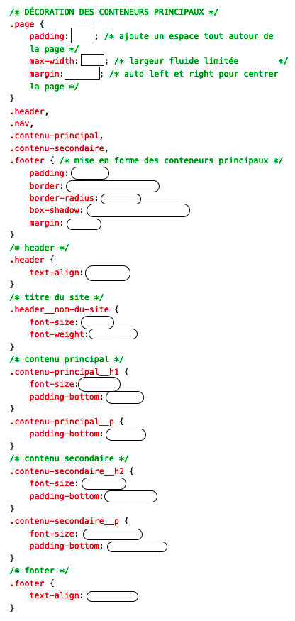 avec les classes appropriées (voir le travail formatif réalisé en classe comme référence pour l'utilisation de :nth-child avec une classe).