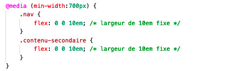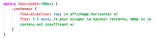 : - À l'aide de requêtes média, ajoutez maintenant ces règles conditionnelles sous chacune des règles mères correspondantes; elles permettent de disposer les flex-items de