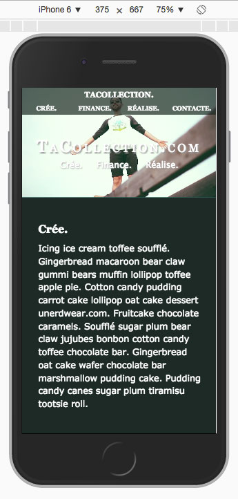 - Assurez-vous qu'en version étroite, le premier lien occupe toute la largeur par dessus les quatre autres liens